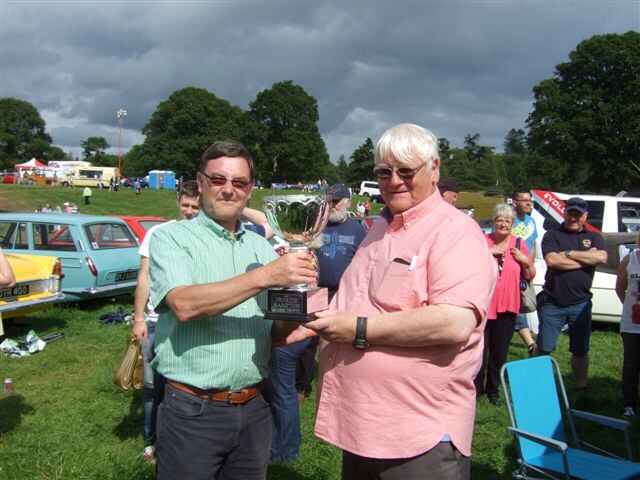 Ron Anderson being presented the Geordie Hampton Trophy by Forbes (Chairman) For best car on Tayside Classic Car Stand